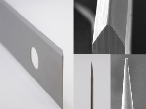 刃長最大実績315㎜、厚み0.4㎜、角度10~50°、先端R0.003~0.025㎜